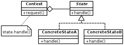 상태가 변할 때마다 서브클래스 중 하나의 인스턴스로 변경함.