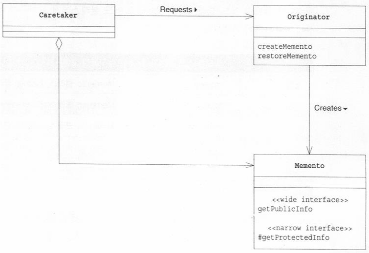 – Caretaker 역할은 중간 중간 Originator 역할에게 부탁하여 ‘현 재의 상태’를 표현하는 Memento 역할을 만든다.