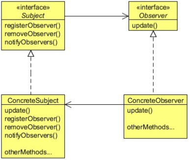 Observer : 일대다의 관련성을 갖는 객체들의 경우 한 객체의 상태가 변하면 다른 모든 객체에 그 사항을 알리고 필요한 수