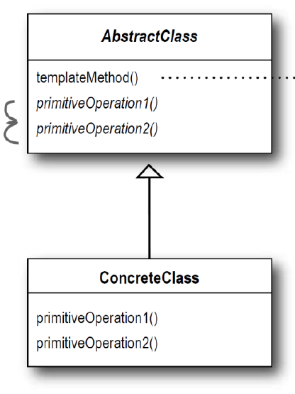 알고리즘의 각 단계들을 정의하며, 그 중 한 개 이상의 단계가 서브클래스에 의해 제공되는 경우에 사용.