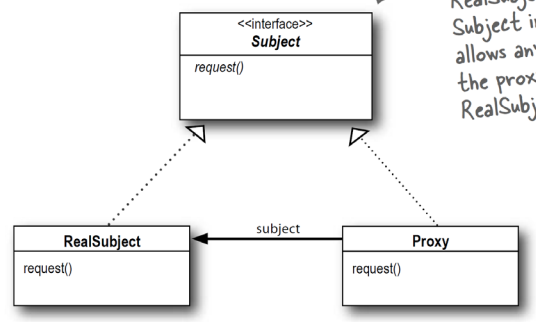 Real subject가 필요한 경우에 생성될 수 있도록 컨트롤 하거나 생성되기 전까지 대리인 역할을 한다. Real subject가 생성되면 Client로부터의 요청사항을 Real subject로 전달한다.