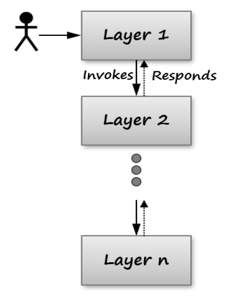 각 계층에는 시스템에서 고유한 역할이 부여되며, 바로 아래 계층에서 제공하는 서비스를 호출한다.