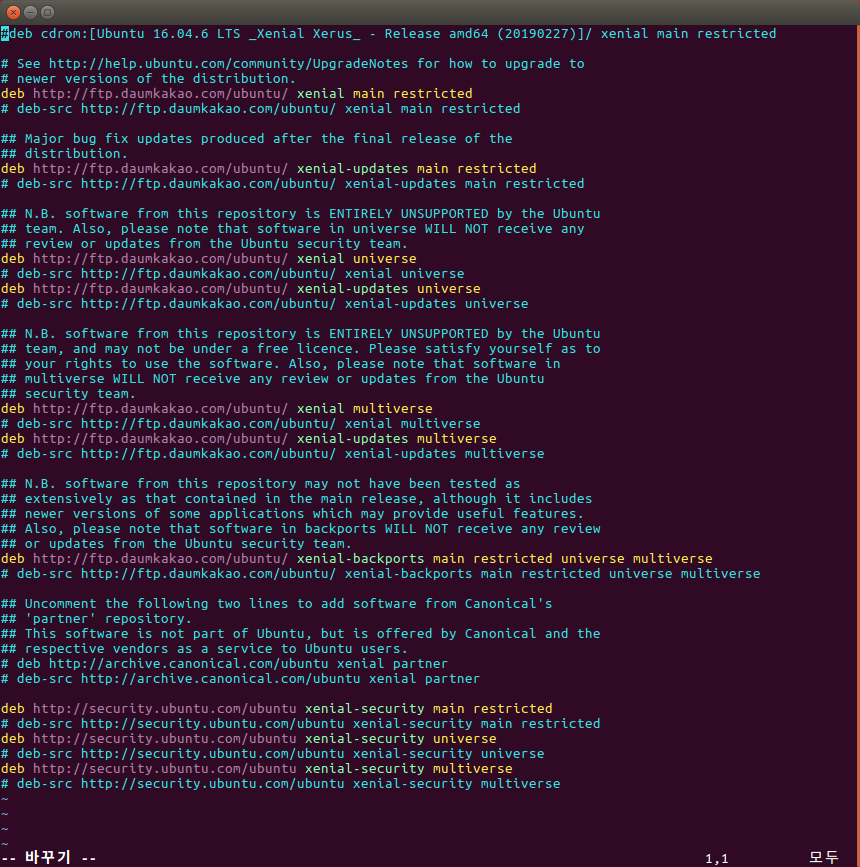 :%s/kr.archive.ubuntu.com/ftp.daumkakao.com